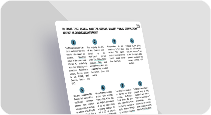 10 FACTS THAT REVEAL HOW THE WORLD'S BIGGEST PUBLIC CORPORATIONS ARE NOT AS CLUELESSASYOUTHINK Traditional Venture Cap-The majority (61.7%) ital is no longer the only of the Unicorns men- way to raise money for tioned by the startups. DocuSign Wal I-Street journal raised in the same round under The Billion Dollar (Series E) exclusively Startups Club have from the following cor- raised from at least one porations: SalesForce, corporate (not including Google, Recruit, Mitsui investment firms and & Co, BBVA, NTT banks). Dacoma, Telstra and M l
